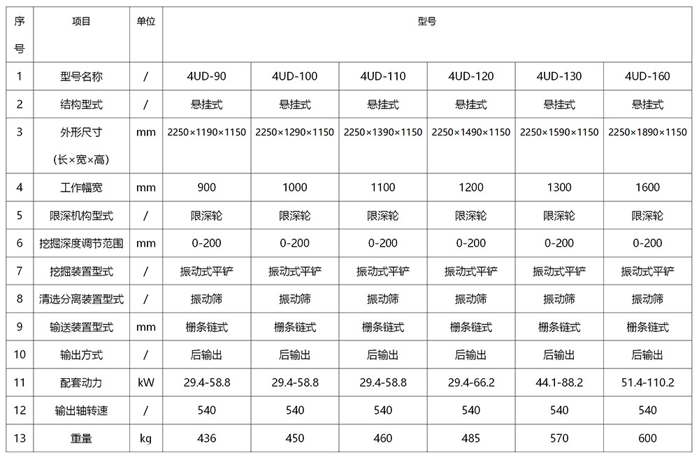 名稱:4UD-90馬鈴薯收獲機